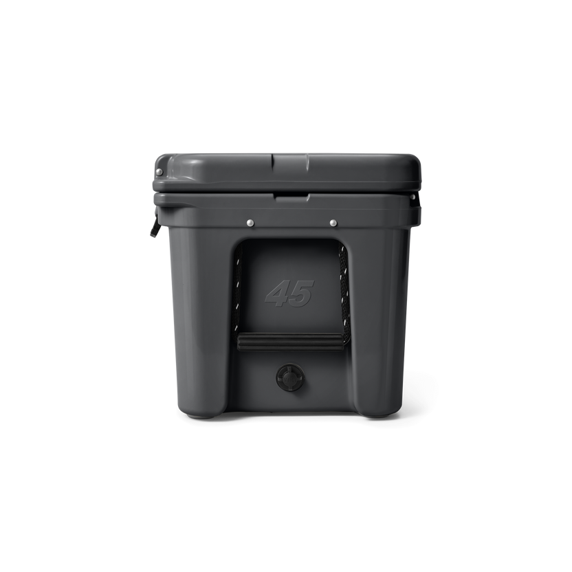 TUNDRA45 COOL BOXA solid all-purpose size. Holds overnight camp provisions for four people or drinks for a day on the water.28 Cans (using a 2:1 ice-to-can ratio)34 lbs Ice (only)MEASUREMENTS & SPECSEXTERNAL DIMENSIONS65.0W X 40.4D X 39.4H CMEMPTY WEIGHT10.4 KGYETI ICE CONFIGURATION1X YETI ICE 1.8 KG ICE PACK1X YETI ICE 900 G ICE PACKA SOLID ALL-PURPOSE SIZE. HOLDS OVERNIGHT CAMP PROVISIONS FOR FOUR PEOPLE OR DRINKS FOR A DAY ON THE WATER.The Tundra® 45 Cooler combines versatility with durability. This premium cooler is infused with that legendary YETI toughness — a durable rotomoulded construction — and up to three inches of PermaFrost™ Insulation. Which is to say it's built to last and will keep your contents ice-cold even in sweltering conditions, or keep your campfire food warm despite the wind chill.BUILT TOUGHROTOMOLDED CONSTRUCTION For virtually indestructible protection.T-REX® LID LATCHES Heavy-duty, patented, and made to never bust.NEVERFAIL™ HINGE SYSTEM An interlocking two-pin design that prevents breaking.BEARPROOF DESIGN Interagency Grizzly Bear Committee (IGBC) approved when used with extra-long shank Master Lock® Padlocks.LEGENDARY PERFORMANCEFATWALL™ DESIGN Holds up to three inches of insulation.PERMAFROST™ INSULATION Pressure-injected polyurethane locks in that just-packed temp.INTERLOCK™ LID SYSTEM Creates a form-fitting barrier against extreme temps.COLDLOCK™ GASKET A freezer-quality gasket that blocks out the heat and locks in the cold.FOR DAY IN, DAY OUT USEDOUBLEHAUL™ HANDLES Made from military-grade polyester ropes.LIPGRIP™ HANDLES Stay out of the way and make carrying your catch easy.BEARFOOT™ NON-SLIP FEET Prevent sliding on the boat or in the backseat.ANCHORPOINT™ TIE-DOWN SLOTS Make it easy to attach to your boat, trailer, or truck bed.SMART DESIGNVORTEX™ DRAIN SYSTEM Leakproof, rugged, and designed for quick and easy draining.